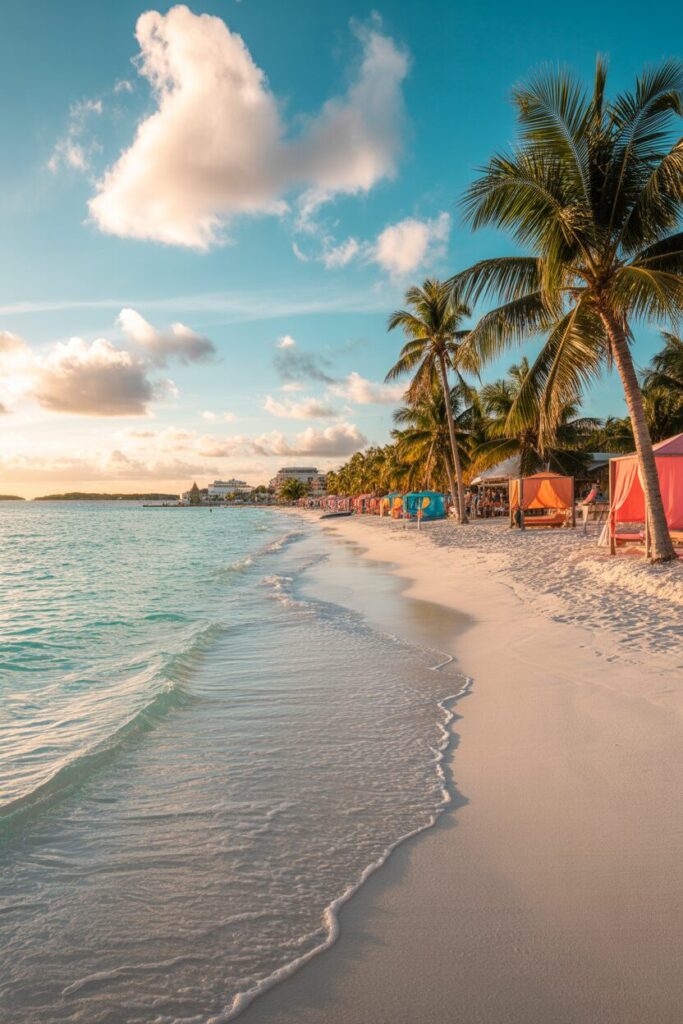 Start your Cancun itinerary at Playa Delfines, one of the most beautiful public beaches in Cancun. The sand feels soft, the water looks photoshopped, and the crowds stay manageable if you arrive early.