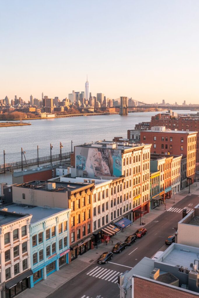 DUMBO feels straight out of Instagram— cobblestone streets, the Manhattan Bridge perfectly framed between buildings, and waterfront parks that deserve awards. Ever wondered where people get those magical NYC skyline shots? DUMBO’s your answer.
